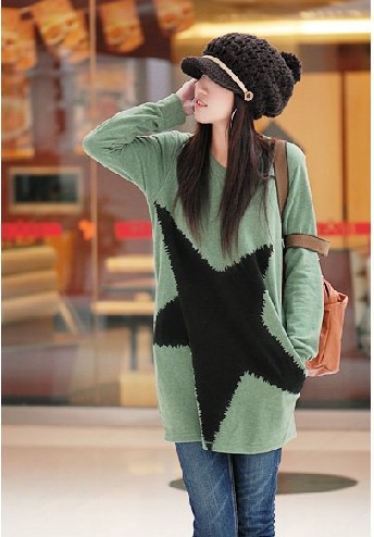 N86500~時尚長款長袖五角星純棉T卹